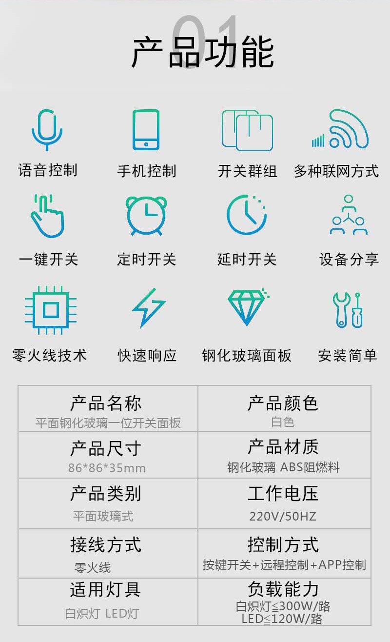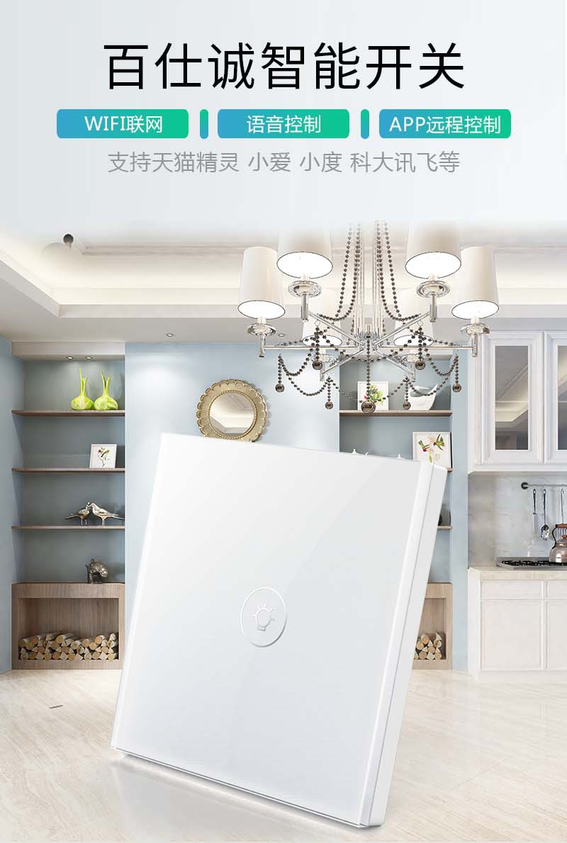 智能觸控平面鋼化玻璃式一位開關(guān)面板_百仕誠
