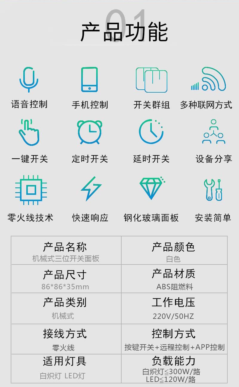 智能觸控機械式三位開關(guān)面板_百仕誠