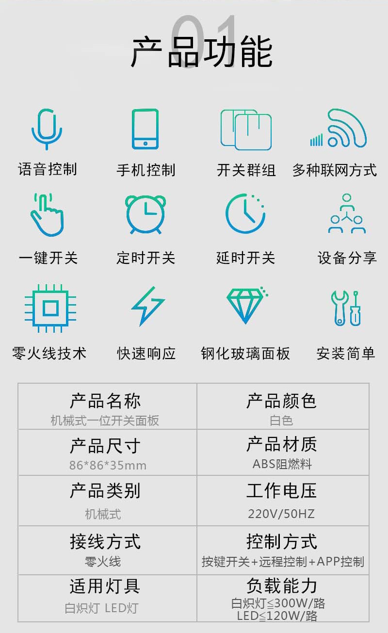 智能觸控機械式一位開關面板_百仕誠