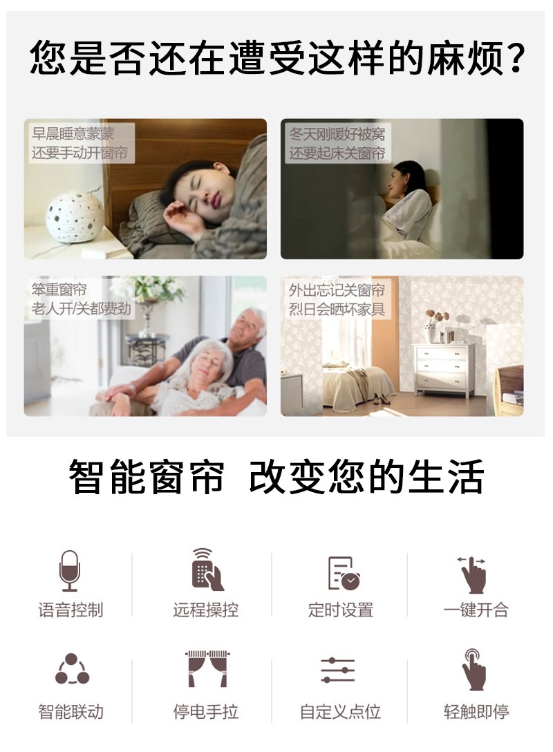 無線窗簾WIFI語音控制神器涂鴉智能電動窗簾伴侶羅馬桿窗簾助力器