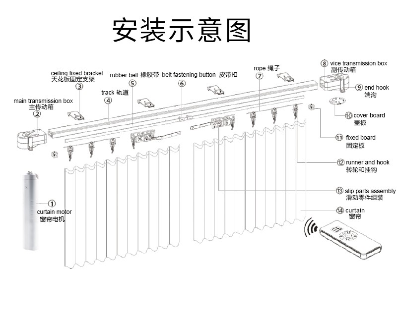 無線窗簾WIFI語音控制神器涂鴉智能電動窗簾伴侶羅馬桿窗簾助力器